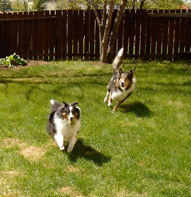 The party didn't start until Saturday, but the hostess was gracious enough to let me bunk at her place for the weekend. She has two stellar Shelties, Luka (9 years) and Cullen (2 years). All of the boys got along very well; Romeo and Cullen chased each other around the house while Gio and Luka stood back and barked at them. Perfect match!